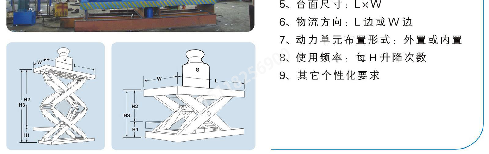 产品特点:可配装各类台面形式(如滚珠、滚筒、转盘、转向、倾翻、伸缩),配合各种控制方式(分动、联动、防爆),具有升降平稳准确、频繁启动、载重量大等特点,有效解决工业企业中各类升降作业难点